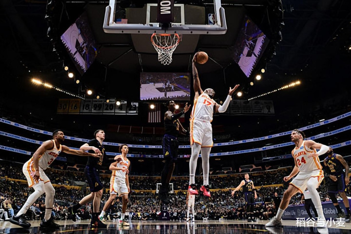 本场比赛中,老鹰的先发中锋奥涅卡-奥孔古(Onyeka Okongwu)的表现令人大跌眼镜。奥孔古全场出场33分16秒,投篮8中3,三分线外3中0,罚球2中1,得到了7分8篮板4助攻1盖帽的数据,还有1次失误和4次犯规,正负值为-22。奥孔古在进攻端的效率非常一般,他缺乏足够的篮下得分能力,他在外线投篮方面的手感也是令人非常失望的,他也没有什么其他方面的表现,在进攻端的贡献度非常有限。最关键的是,奥孔古在防守端的表现实在是太糟糕了,他简直是被湖人各种打爆。不夸张地说,湖人先发中锋德安德烈-艾顿(DeAndre Ayton)可以说是轻松拿捏了奥孔古,在攻防两端都打得予取予求,这也能够说明奥孔古的表现有多糟糕。