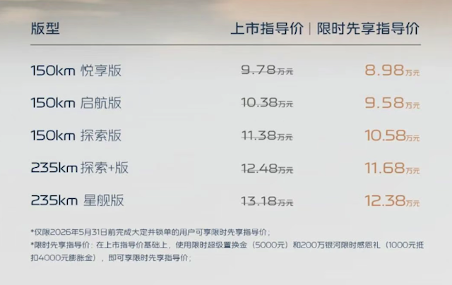 快科技4月23日消息,昨晚,2026款吉利银河A7 EM与全新吉利银河A7 EV双车正式上市,上市限时先享指导价分别为8.98万元起、10.28万元起。